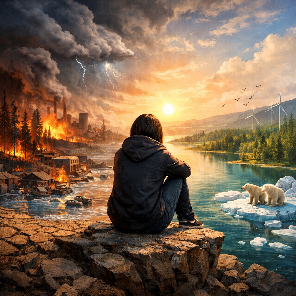 Moni nuori kantaa tänä päivänä huolta, joka ei liity yksittäiseen kokeeseen, ihmissuhteeseen tai edes omaan elämänpolkuun. Huoli on laajempi ja raskaampi. Se koskee koko planeettaa. Ilmastokriisi ei ole enää kaukainen uhkakuva tai uutisotsikoihin rajattu ilmiö, vaan se on läsnä arjessa, mielessä ja kehossa. Se herättää kysymyksiä, joihin ei tunnu löytyvän vastauksia. Millaisessa maailmassa elämme kahdenkymmenen vuoden kuluttua. Onko meillä turvallista kotia, vakaata yhteiskuntaa ja luontoa, johon voi nojata.
