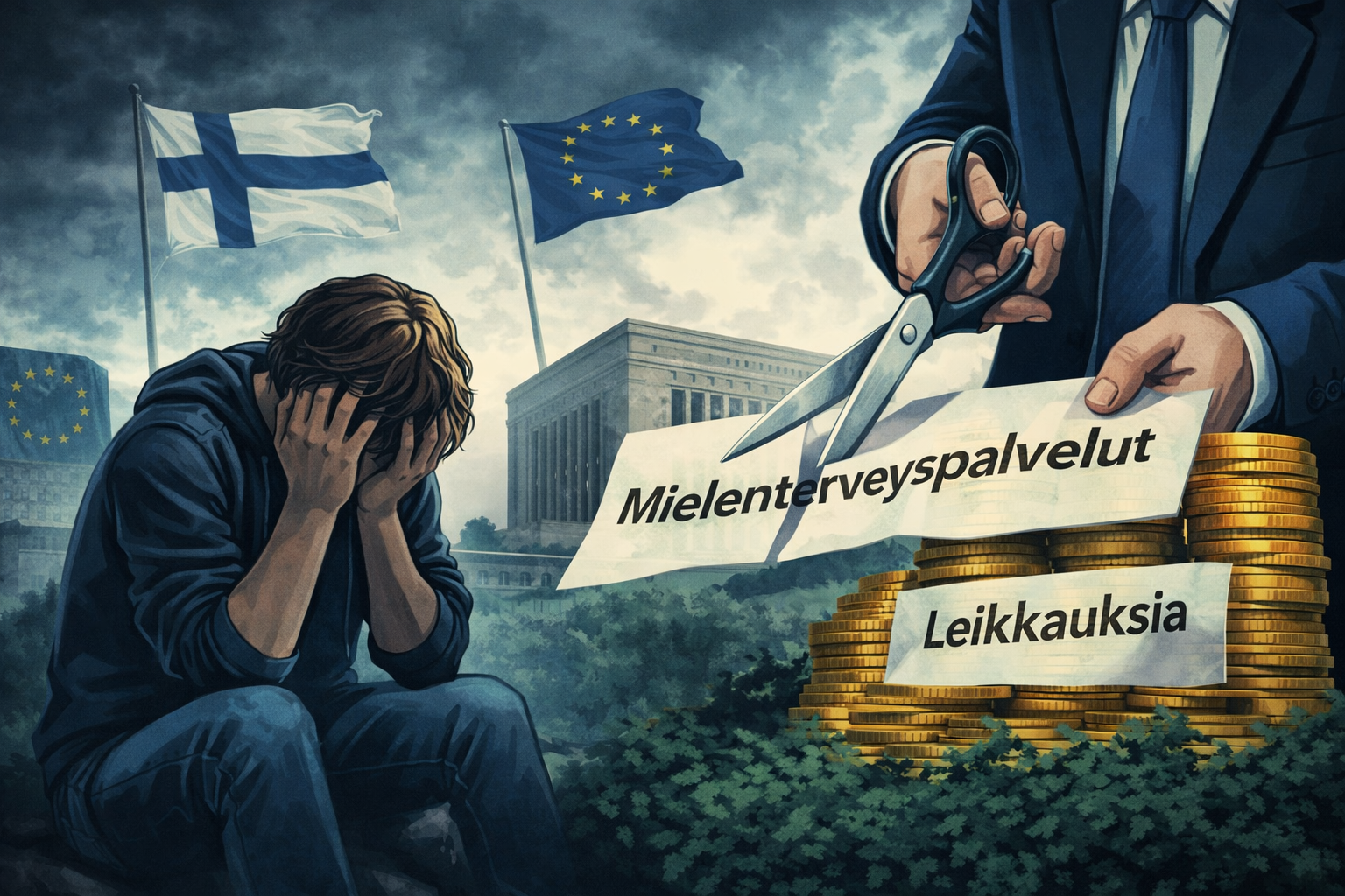 Suomi on ajautunut tilanteeseen, joka olisi vielä muutama vuosi sitten tuntunut monista mahdottomalta. Maa, jota on totuttu pitämään hyvinvointivaltion malliesimerkkinä, on joutunut EU:ssa sosiaalisen kehityksen tarkkailuluokalle. Tämä ei ole tekninen yksityiskohta tai byrokraattinen huomautus, vaan vakava poliittinen viesti. Se kertoo, että eriarvoisuus kasvaa, hyvinvoinnin mittarit heikkenevät ja yhä useampi jää ilman tarvitsemiaan palveluja. Erityisen huolestuttavaa on se, että yksi keskeisimmistä ongelmista liittyy mielenterveyteen ja hoitoon pääsyyn.