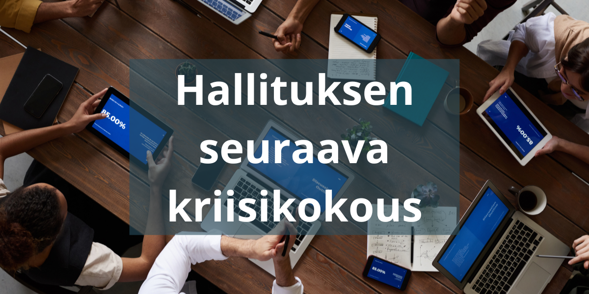 Hallituksen toiminta alkaa muistuttamaan pikku hiljaa huonoa sketsiohjelmaa, mutta täytyy muistaa, että he johtavat Suomea. Tuleeko tämä yllätyksenä enää teille, kun sanon, että hallitus on järjestämässä uutta kriisikokousta? Kohta saamme taas kuulla, kuinka hallitus voi paremmin kuin koskaan ja taas (viimeistään) kahden viikon päästä on uusi kriisikokous. Eikä kannata unohtaa, että Petteri Orpo tulee sanomaan "kriisin jälkeen" tämän olevan kaikkien aikojen paras hallitusohjelma, johon kaikki hallituspuolueet on täysin sitoutuneet.
